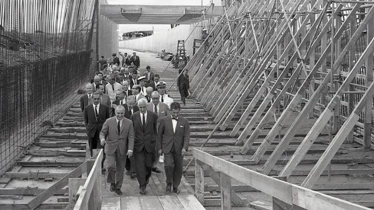 12 de diciembre de 1965. El presidente Arturo Illia recorrió las obras del Túnel Subfluvial.