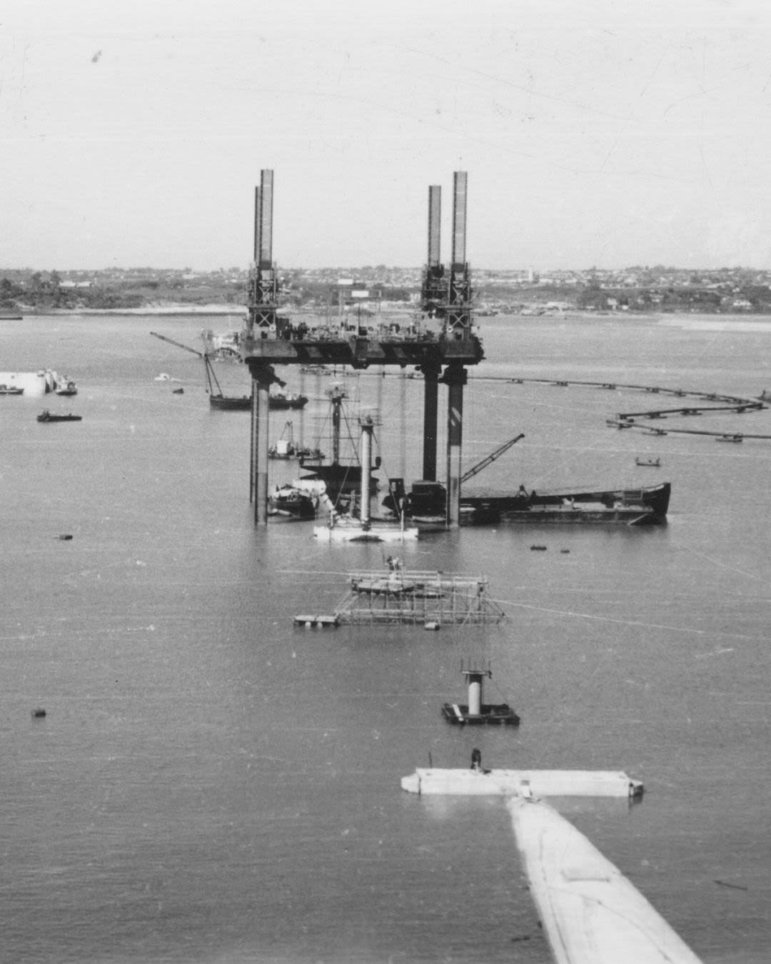 Imagen de la “isla flotante” llegada desde Holanda, utilizada para colocar los tubos del túnel.